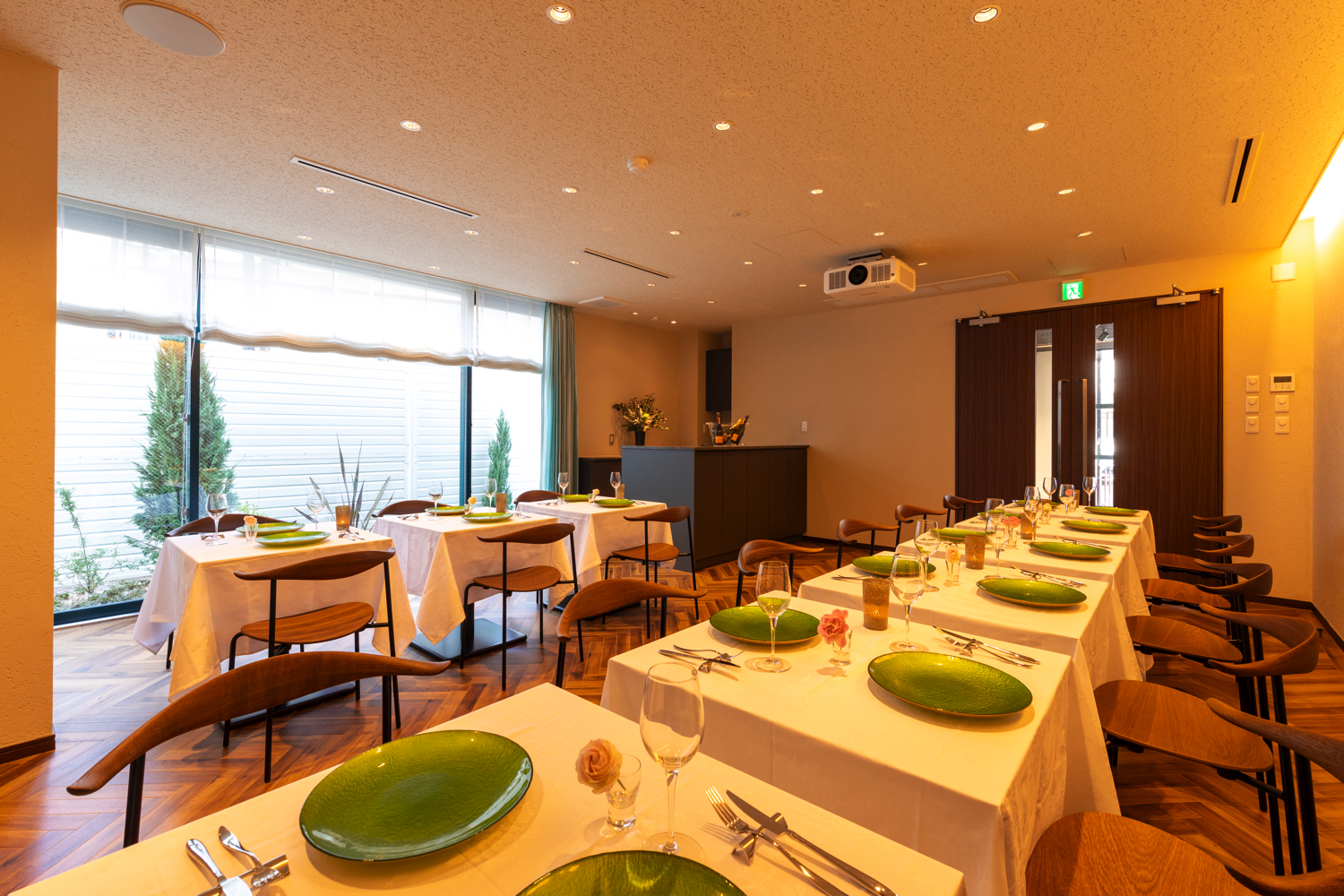 ホテルやブライダル施設の接遇技術を学ぶ専用の実習室です。レストランを再現した教室で実践的に学ぶ事ができます。