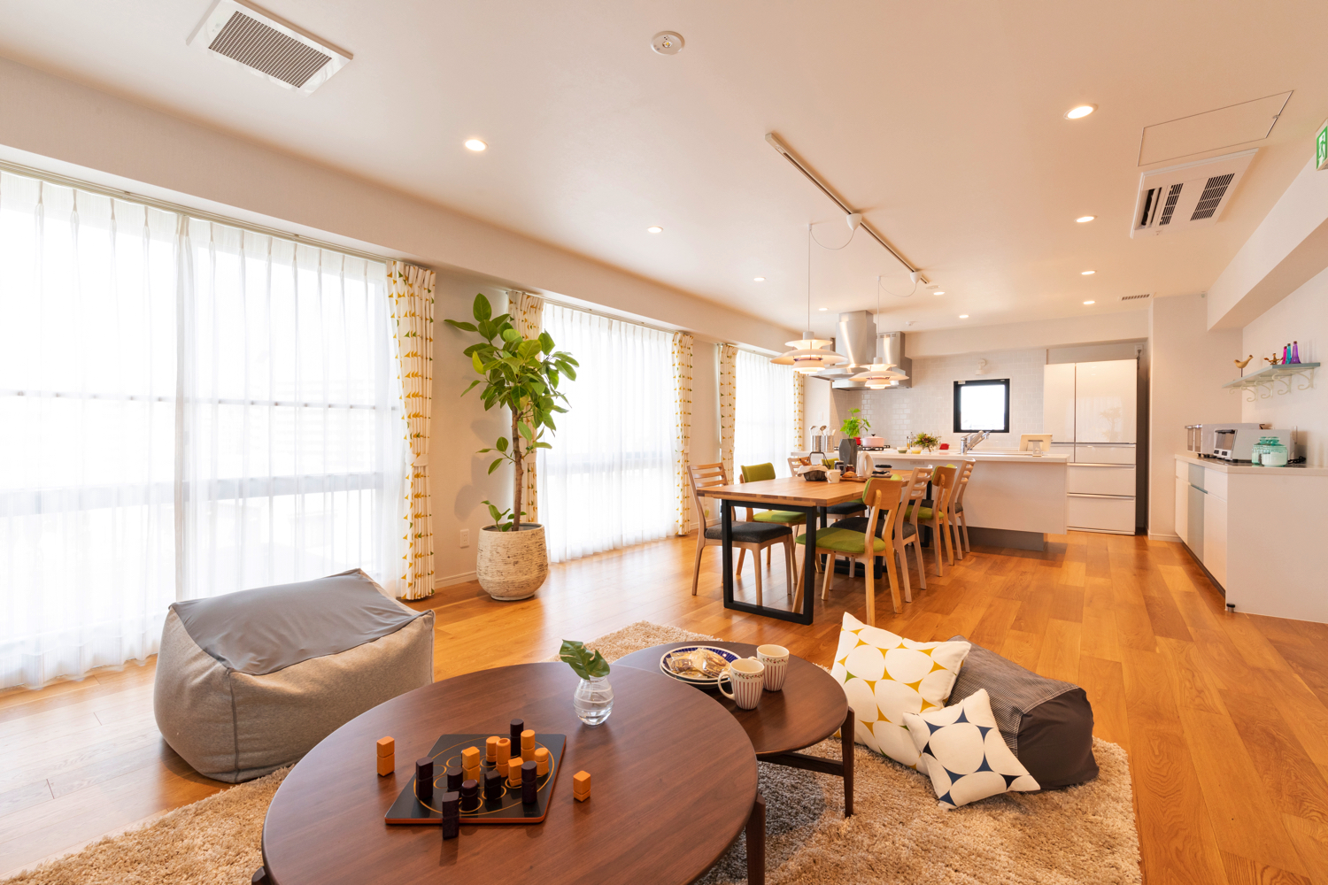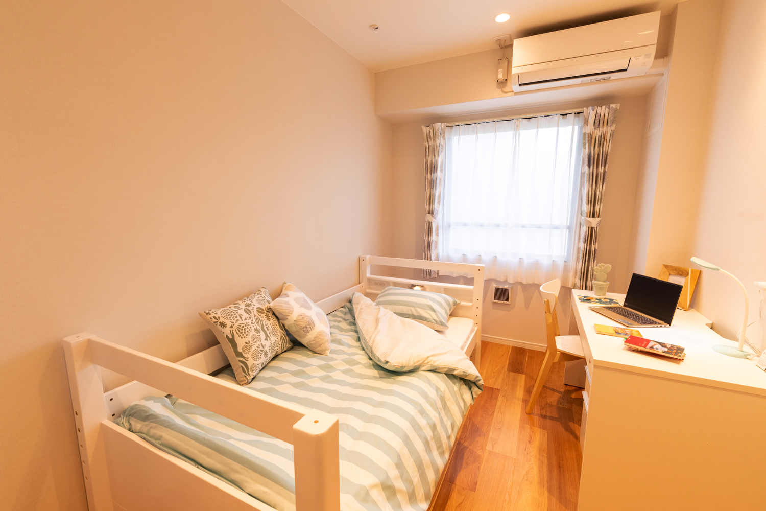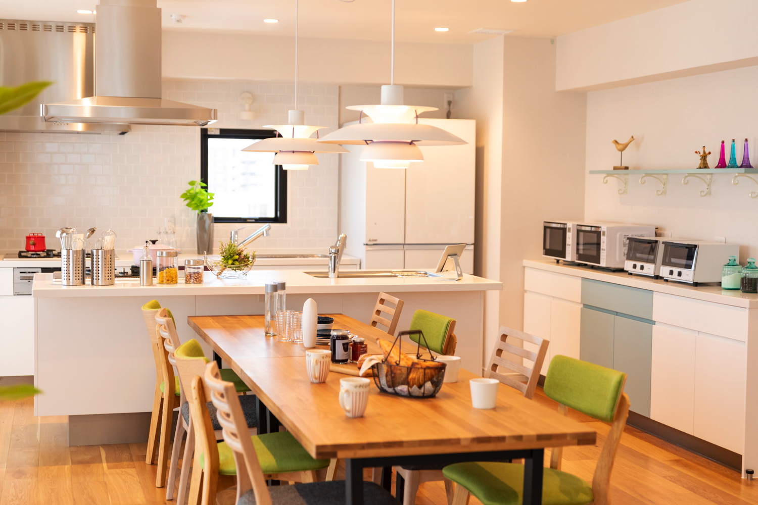 女子専用のシェアハウス。家具、調理器具、ランドリーなどを完備し、セキュリティも万全です。