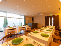 ホテルやブライダル施設の接遇技術を学ぶ専用の実習室です。レストランを再現した教室で実践的に学ぶ事ができます。