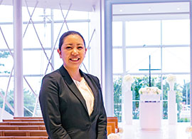高校生の時からヒルトンへの憧れがありましたが、高校にはヒルトンからの求人がありませんでした。研修先に「ヒルトン福岡シーホーク」があり、さらに現場も体験したうえ、1年間で卒業できる「スピリッツオブマイスター」への入学を選択。現在はウエディングセールスを担当し、夢を叶えるチャンスをたくさんいただき充実しています。